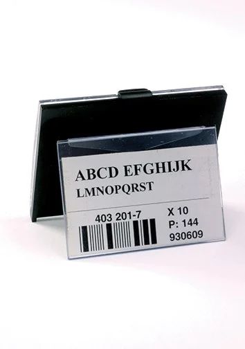 The additional label pocket attaches to the rear side of a paper price cassette or to an adapter for electronic labels, providing space for internal information visible only to service counter staff.
