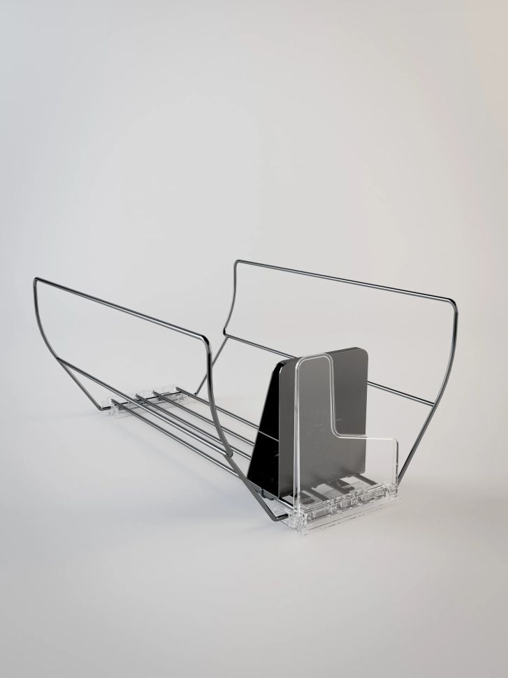 The system automatically pushes products to the front of the shelf, keeping displays tidy and well organised. Special wire side panels securely hold round pizza packaging and ensure excellent product visibility in refrigerated cabinets and retail shelving.