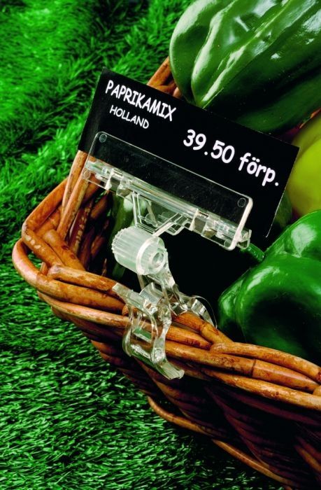 прозрачна щипка с черна табелка